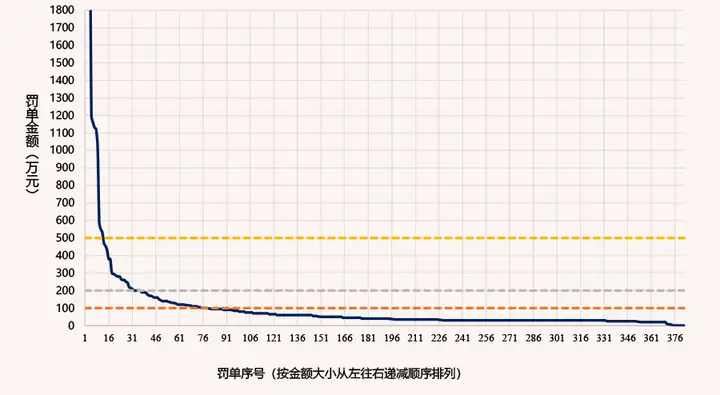 呈瀑布式分布,大额罚单“量额双升”凸显震慑力,小额处罚仍占主导