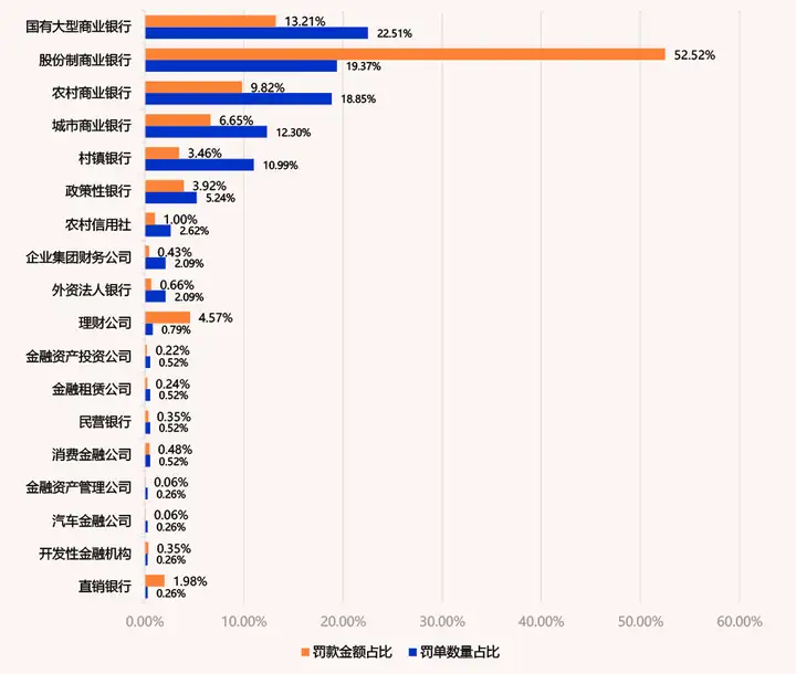 国有大型商业银行、股份制商业银行、农村商业银行为核心,直销银行、理财公司单笔处罚额居高位