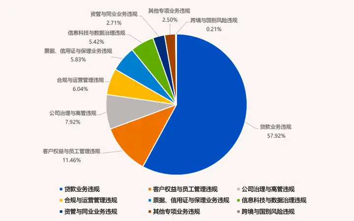 贷款业务、客户权益与员工管理、公司治理与高管违规等传统业务仍为处罚高发区