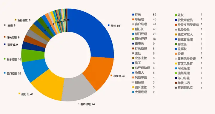 在已披露的岗位中,高管岗位是处罚核心领域:行长以89次处罚居首,总经理45次、副行长43次、副总经理16次,四类高管岗位合计处罚193次,占明确岗位总次数(341次)的56.60%,凸显监管对“关键少数”履职责任的严格追究。同时,业务一线岗位处罚频次较高,客户经理和部门经理分别以44次和26次处罚位列全岗位第三和第五,远超其他基层岗位,成为个人处罚的重要领域。