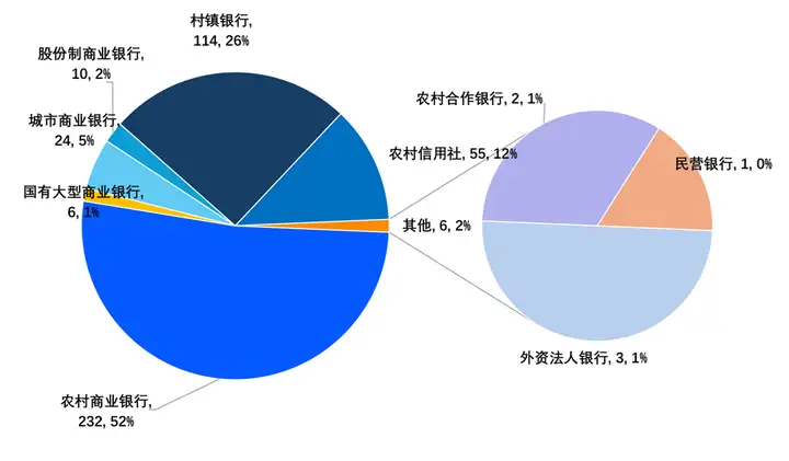 银行总体罚单数量为484,占机构罚单数量的93.42%,处罚金额近6.12亿元,占机构处罚金额的82.16%。全年有447家机构受到反洗钱处罚,具体涉及6家国有大行、10家股份制银行,24家城商行,232家农商行,114家村镇银行、55家农信社、2家农村合作银行、3家外资银行、1家民营银行。